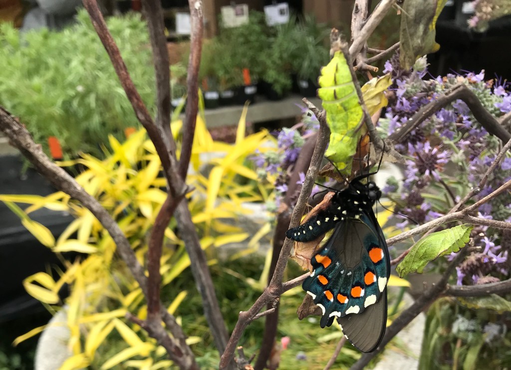 “From my morning exploration at the school garden behind my house. The insects – wasps, bees, ladybugs, Monarchs (big ones) – were plentiful.”