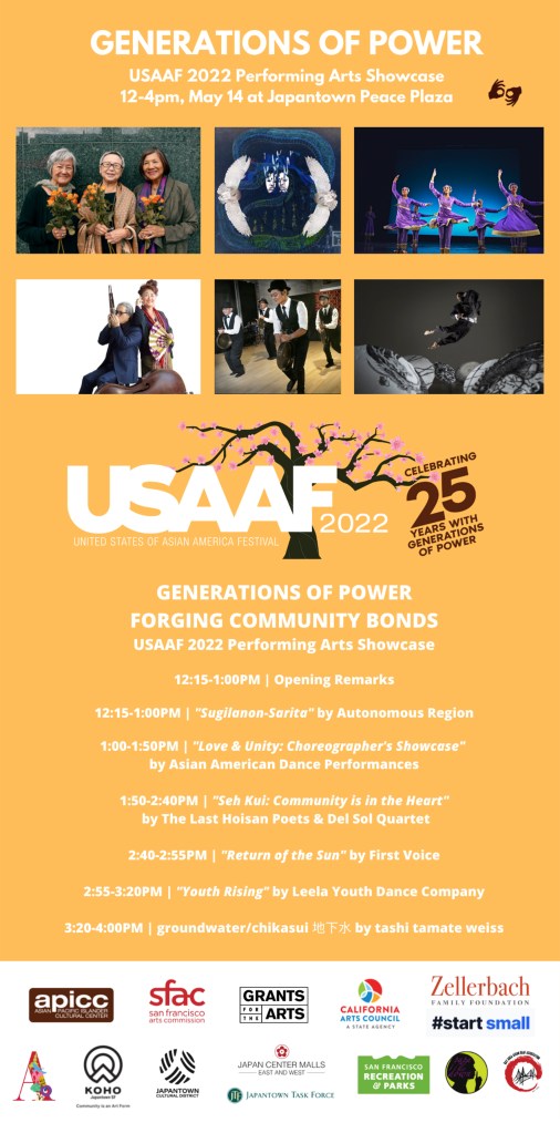 A deep bow of respect for the many artists who supported this project by generously sharing their creative contributions and light – Thanks to multimedia journalist Juan Carlos Guerrero; filmmaker/director Allie Light; musicians Kenneth Nash, Del Sol Quartet, and Marcus Shelby, who celebrated Flo’s 75th birthday with Gwah Gai: Crossing the Street in 2013 and crosses the street once again with his musical contribution in 2023!