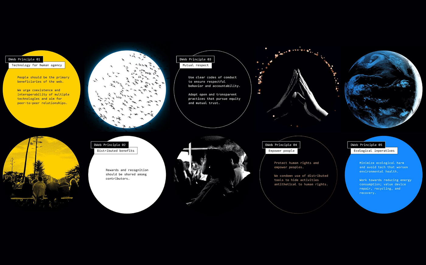 These principles define the values of a decentralized web based on enabling agency of all peoples. It is the basis for behavioral norms and mutual accountability.